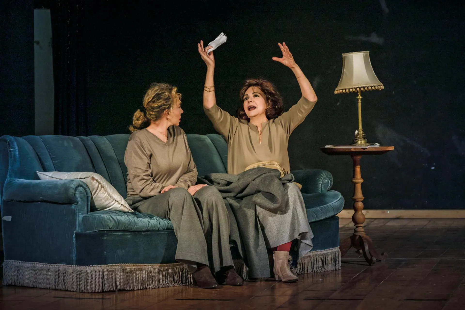 La storia è quella di due sorelle e di un fratello alle prese con una madre malata da accudire. Siamo in un interno borghese: un divano azzurro, una panchina e in mezzo un ambiente che porta alla stanza della madre solo evocata (scene Paola Comencini). La prima sorpresa - per chi ricorda gli anni di Teatri Uniti - è veder recitare insieme Iaia Forte, Licia Maglietta e Andrea Renzi, che in un certo senso in scena sono davvero - e artisticamente lo sono - come fratelli: a proprio agio tra loro. Iaia Forte è Patrizia, la sorella allegra e solare, così diversa dall’instancabile Diana, interpretata da Licia Maglietta. Andrea Renzi, invece, è Stefano, il cocco della mamma che però vive lontano per sottrarsi ai turni per accudirla. Ma il tema è proprio questo: qual è il nostro ruolo all’interno del nucleo familiare? «Chi ci ha obbligate ad essere ognuna così?», si chiede Patrizia, e ancora: «Che cosa è una famiglia? Tutti insieme chiusi dentro?». Quello che siamo «viene deciso per noi già da subito», sostiene Diana.