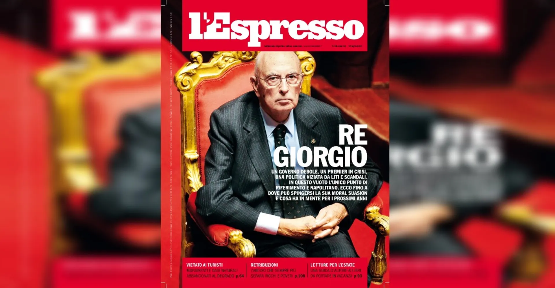 Per L’Espresso il 2011 in Italia fu l’anno della “corte di Re Giorgio”, ovvero l’insieme di figure chiamate a «riempire il vuoto di Berlusconi» nel panorama politico. Esisteva cioè, una macchina quirinalizia guidata dal segretario generale Donato Marra, che con le sue frequenti telefonate faceva da anello di congiunzione tra la presidenza della Repubblica e il mondo politico. Il cosiddetto governo del presidente, quindi, entrava sempre più spesso in funzione di supplenza quando il governo Berlusconi latitava o si distraeva. Napolitano, tuttavia, anche rispetto ad alcuni suoi predecessori, preferiva mantenersi arbitro da lontano, esercitando una “moral suasion”, una pressione morale «più che un interventismo urlato». Di fronte, tuttavia, al vuoto politico del 2011, scriveva L’Espresso, era più che mai necessario accogliere l’invito del presidente a «tenere fuori dalle tensioni l’economia, la giustizia e le istituzioni» per poter essere in grado di oltrepassare una nuova e «lunga notte della Repubblica».