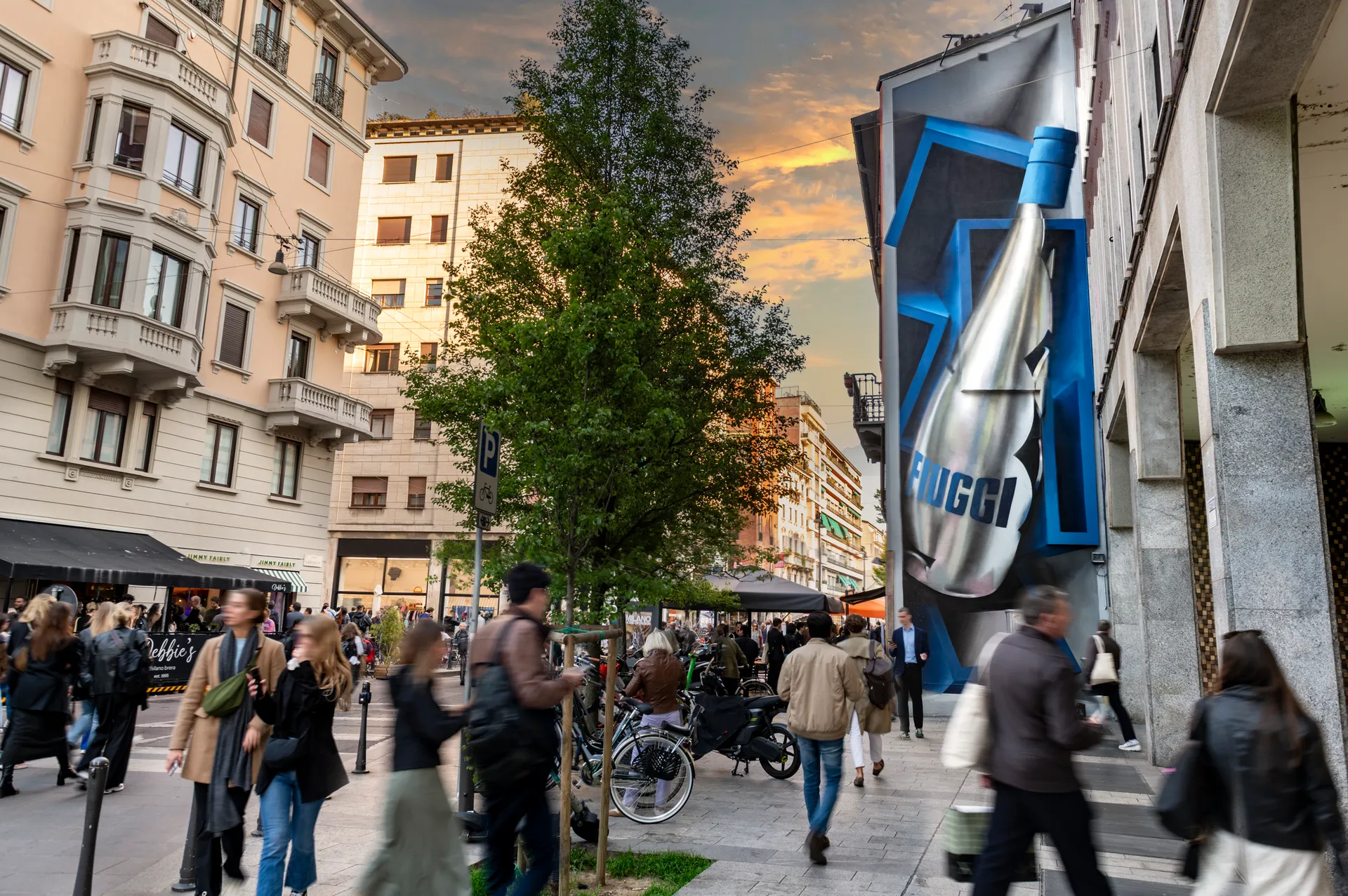 Un esempio significativo è il progetto sviluppato tra il 2024 e il 2025 con Acqua Fiuggi. In questo caso il lavoro non si è limitato a un singolo intervento, ma ha dato vita a un percorso articolato che ha coinvolto un sito produttivo, un grande centro urbano e il tessuto storico di Fiuggi. Un’operazione che ha messo alla prova la capacità di adattare un racconto visivo coerente a pubblici e spazi profondamente differenti.