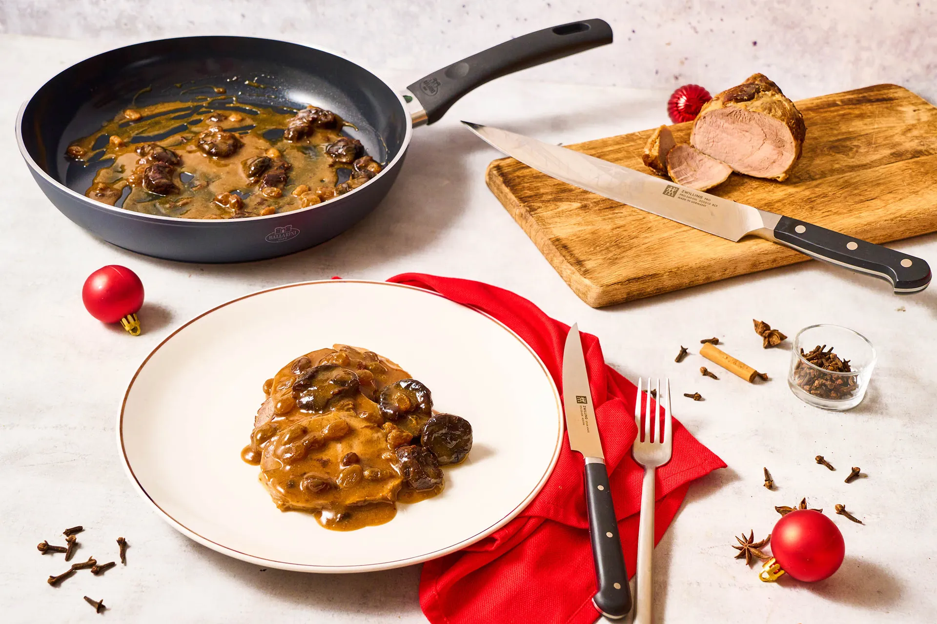 Arrosto di vitello al latte, spezie natalizie, uvetta e prugne secche
