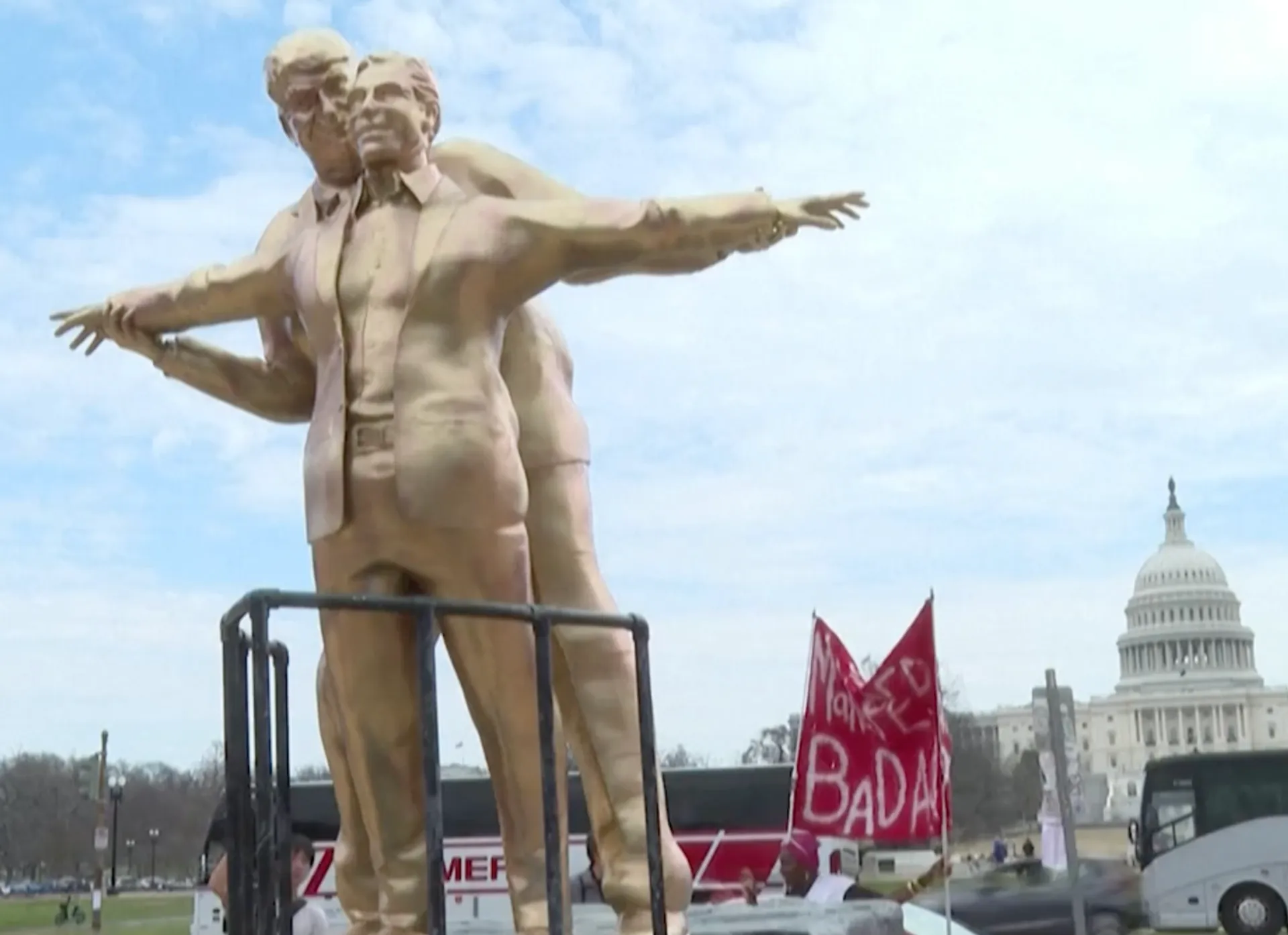 Una statua di protesta alta circa 3,6 metri è comparsa sul National Mall, a pochi passi dal Campidoglio degli Stati Uniti, a Washington. L’opera raffigura il presidente americano Donald Trump e il defunto finanziere Jeffrey Epstein nella celebre posa romantica di Jack e Rose sulla prua della nave nel film Titanic.