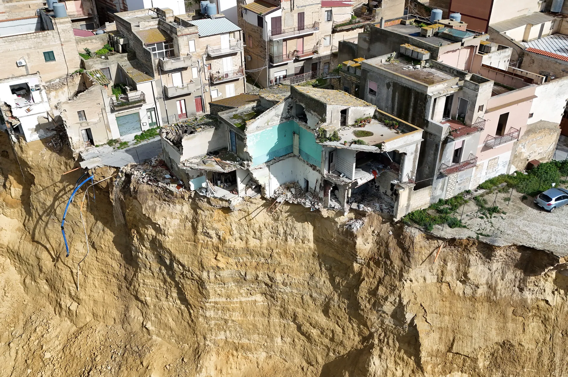 Niscemi non è un luogo qualsiasi. Qui le frane tornano con una puntualità che smentisce ogni racconto dell’imprevedibilità: 1790, 1997, oggi. Stessi quartieri, stesso versante, stesso meccanismo geologico: un altipiano sabbioso sull’argilla che, quando piove, diventa viscida e scivola. Area classificata a rischio molto elevato dal Piano idrogeologico. Eppure, ai bordi della rocca, gli edifici sono rimasti. Non per ignoranza, ma per scelta.