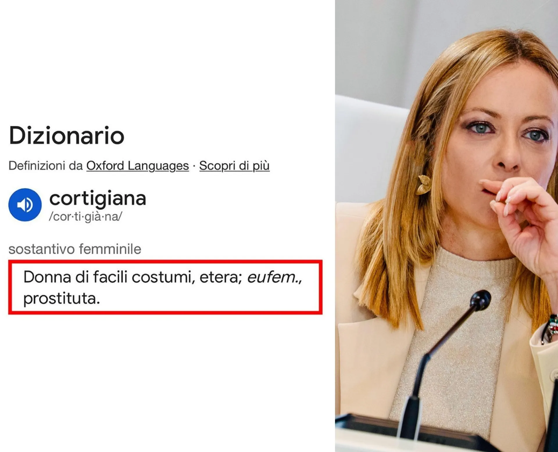 Dopo un giorno di silenzio, arriva la replica di Giorgia Meloni. "Il segretario generale della Cgil, Maurizio Landini, evidentemente obnubilato da un rancore montante (che comprendo), mi definisce in televisione una 'cortigiana'. Penso che tutti conoscano il significato più comune attribuito a questa parola, ma, a beneficio di chi non lo sapesse, ne pubblico la prima definizione che si trova facendo una rapida ricerca su Internet — scrive in un post su Instagram —. Ed ecco a voi un'altra splendida diapositiva della sinistra: quella che per decenni ci ha fatto la morale sul rispetto delle donne, ma che poi, per criticare una donna, in mancanza di argomenti, le dà della prostituta”.